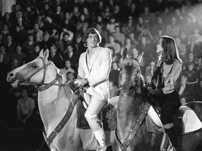 Актеры Александр Абдулов и Ирина Алферова на арене Московского цирка во время подготовки новогодней передачи «Аттракцион». 1982 год. Фотография: Виталий Созинов / ТАСС