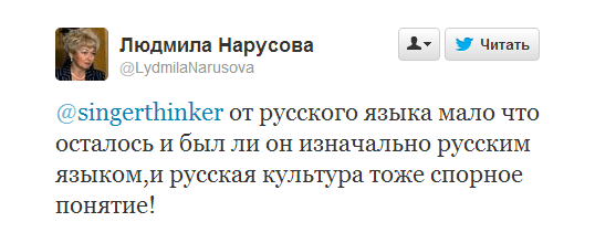Согласно утверждениям Людмилы Борисовны, у русских не существует не только культуры, но даже родного языка: